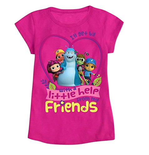 Beat bugs Netflix Girls T shirt . The fuchsia shirt is enhanced with all of her favorite Beat Bugs characters and the saying "I'll Get By With A Little Help From My Friends.This short sleeve crewneck shirt is made of 100% cotton and machine washableFeature