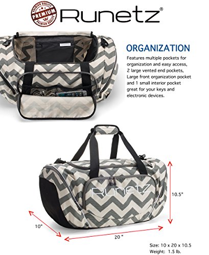 Runetz - Chevron GRAY Gym Bag Sport Shoulder Bag for Men & Women Duffel 20-inch Large - Chevron Grey