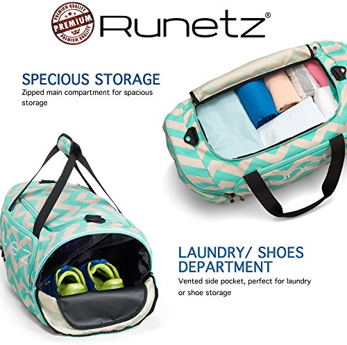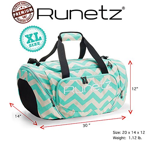 Runetz - Extra Large Chevron TEAL Blue Gym Bag Sport Shoulder Bag for Men & Women Duffel 30-inch XL - Chevron TEAL