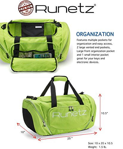 Runetz - LIME GREEN Gym Bag Sport Shoulder Bag for Men & Women Duffel 20-inch Large - Lime Green