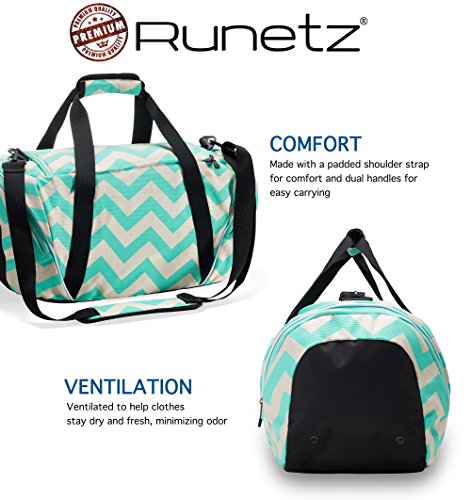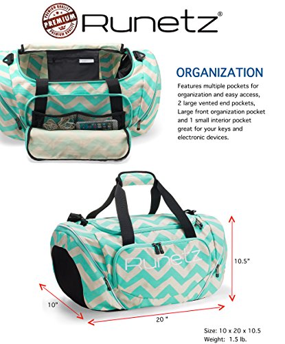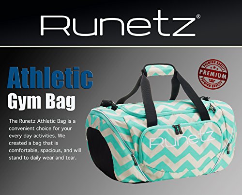 Runetz - Chevron Hot TEAL Blue Gym Bag Sport Shoulder Bag for Men & Women Duffel 20-inch Large - Chevron Teal