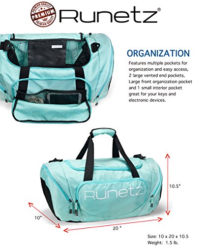 Runetz - TEAL Hot Blue Gym Bag Sport Shoulder Bag for Men & Women Duffel 20-inch Large - Teal