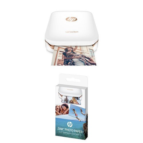 HP Sprocket Portable Photo Printer (white) with additional 40 sheets ZINK Sticky-Backed Photo Paper