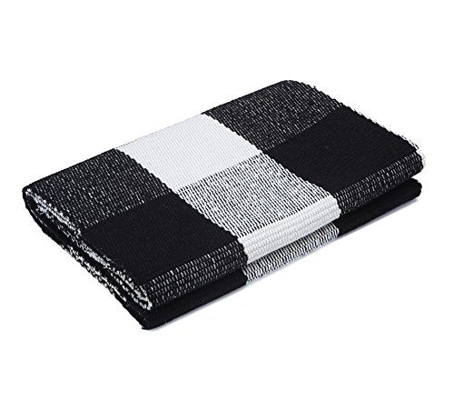 (PRAGOO)/Furniture Decor/Home Decor/DIRECT FROM USA/PRAGOO Cotton Rug Hand-woven Checkered Carpet Braided Kitchen Mat Living Room Area Rug Black Wh...
