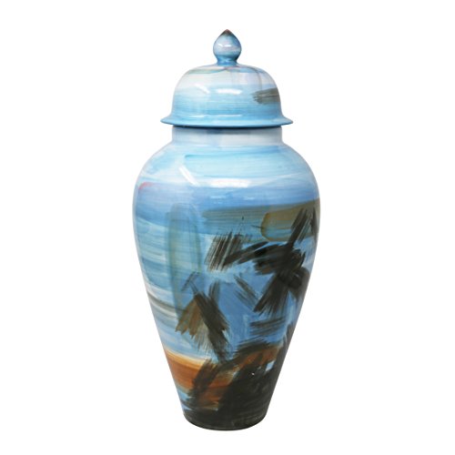 Sagebrook Home Decorative Covered Ceramic Jar, 9.75" x 9.75" x 19", Blue Mix