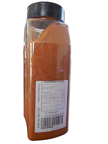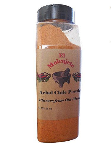 Arbol Powder Whole Dried Chile El Molcajete Brand for Sauces, Salsa, Pasta, Chili, Meat, Pizza, Potatoes, Vegetables, Soups, Stews , Chicken and BBQ (Arbol Powder 16 oz)