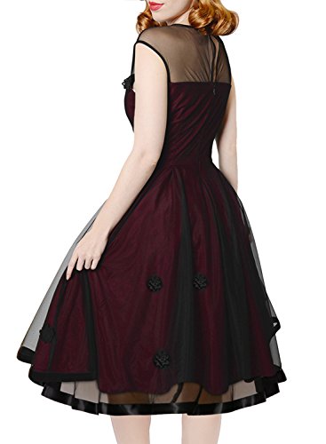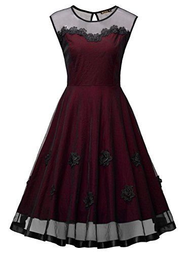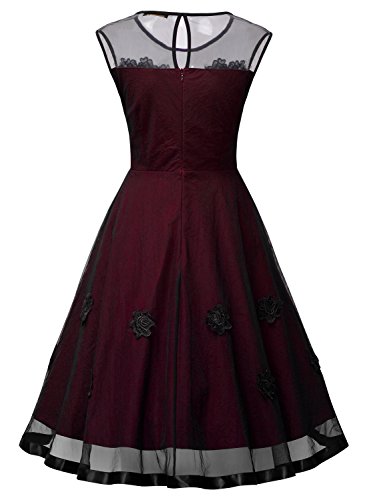 Miusol Women's Elegant Illusion Floral Lace Cap Sleeve Bridesmaid Prom Dress (Small, Wine)