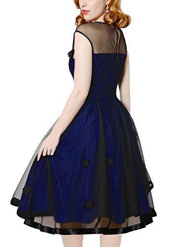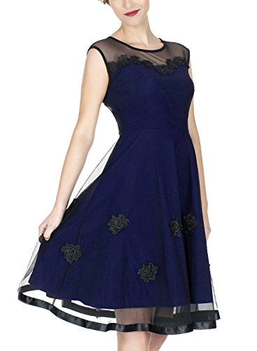Miusol Women's Elegant Illusion Floral Lace Cap Sleeve Bridesmaid Prom Dress (X-Large, Navy Blue)