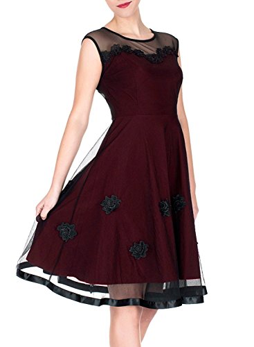 Miusol Women's Elegant Illusion Floral Lace Cap Sleeve Bridesmaid Prom Dress (XX-Large, Wine)