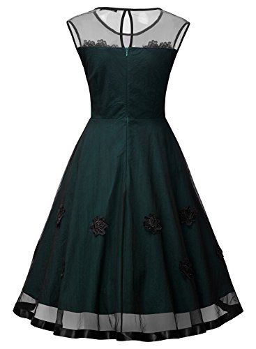 MIUSOL Women's Elegant Illusion Floral Lace Cap Sleeve Bridesmaid Prom Dress, Dark Green, Large
