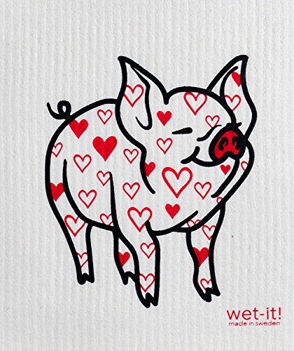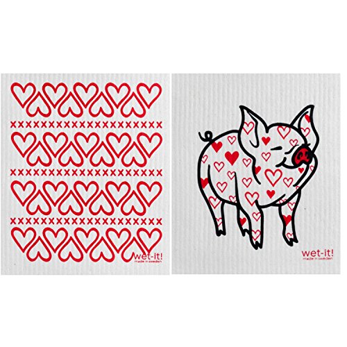 Wet-It Swedish Treasures Dishcloth Set of 2 (Hearts and Pig with Heart)