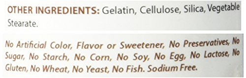 No Artificial Color, Flavor or Sweetener, No Preservatives, No Sugar, No Starch, No Corn, No Soy, No Egg, No Lactose, No Gluten, No Wheat, No Yeast, No Fish, No Sodium.
