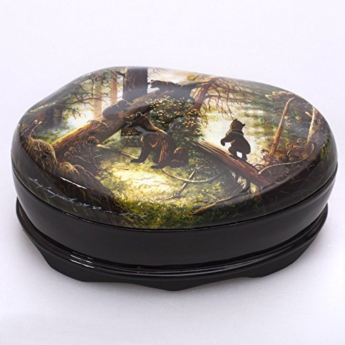 Beautiful Hand-painted Papier-mache Lacquer Box for Jewelry 'Morning in a Pine Forest' Great Gift for Women
