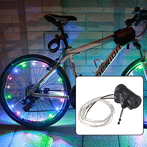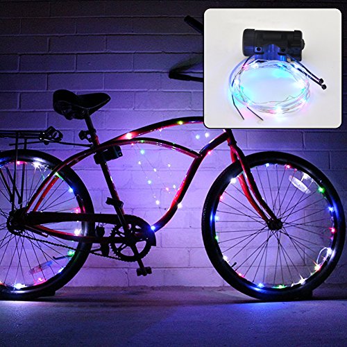 Description: Cool Bright LED Bike Accessory Helps to be Seen And Be Safe During Night Time Bike Riding 20 Bright LED Lights In Waterproof Tubing Comes with Velcro Strap for Battery Pack and Zip Ties for The Light String Waterproof, Durable, and Flexible Works with almost all standard bike wheels 20" and over