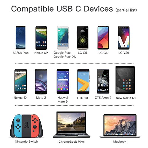 - 【COMPATIBILITY】Complete charge and sync compatibility with Samsung Galaxy S8/S8 Plus, Nintendo Switch, New Macbook, Macbook Pro, Google Pixel, Nexus 6P, Nexus 5X, LG G5 G6 V20, OnePlus 2, Lumia 950, Mote Z, HTC 10,ZTE A Xon7, New Nokia N1 tablet and other USB C devices