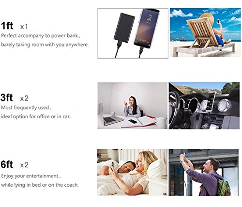 - 【ASSORTED LENGTHS】The length of 1ft+3ft+6ft is for ease of connecting devices. You can use freely the short one with power bank, long one in your office, home and even in the backseat of your car