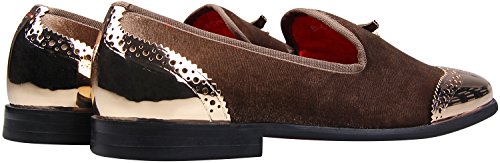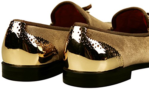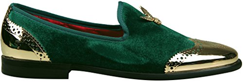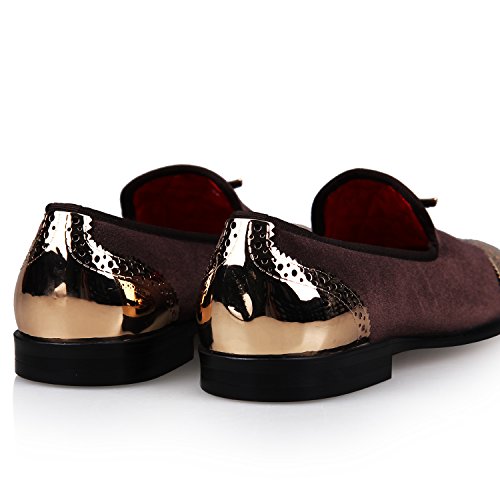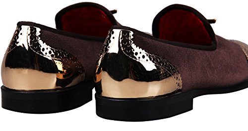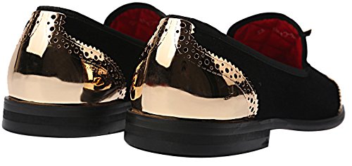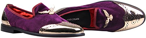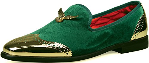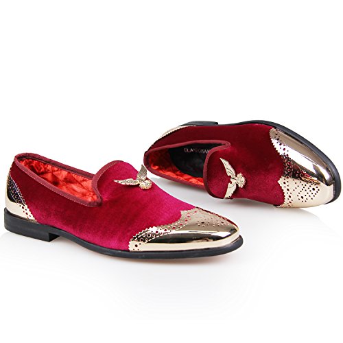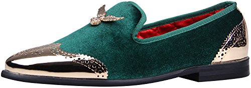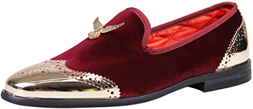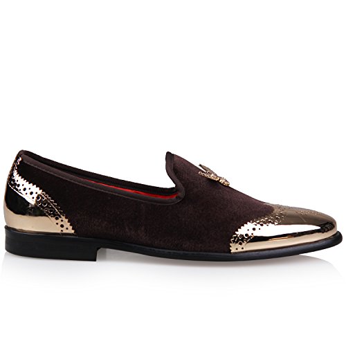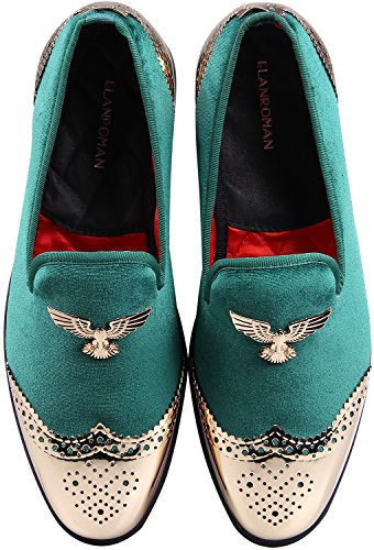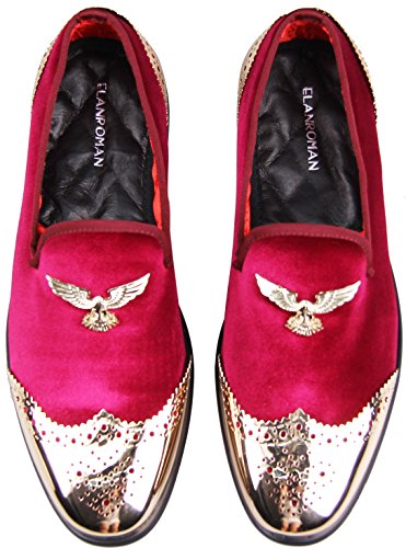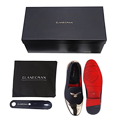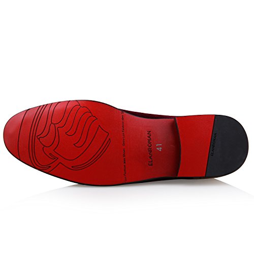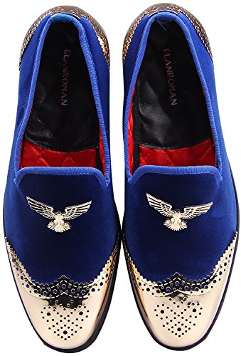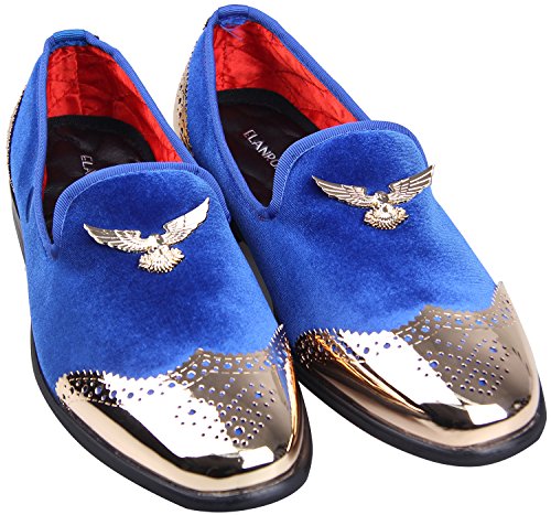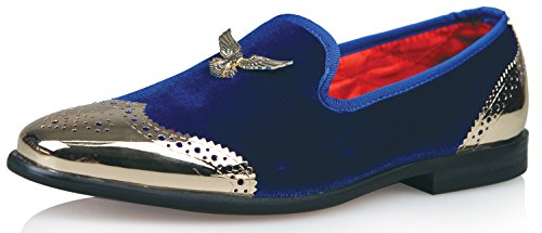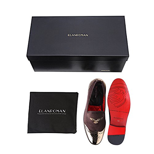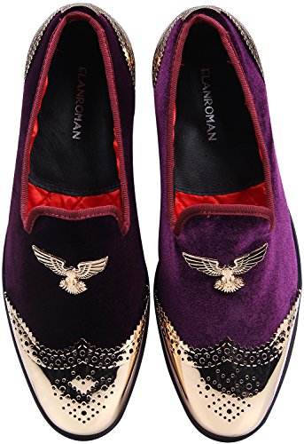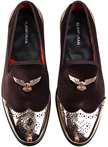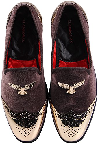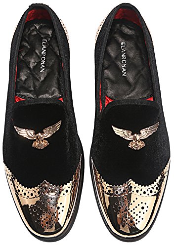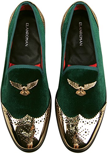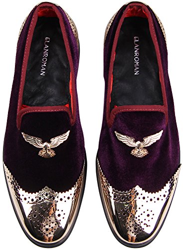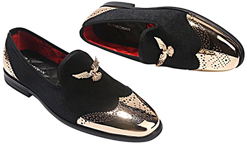 | ELANROMAN Men's Metal Eagle Buckle Velvet Loafer Round Toes Smoking Slipper |