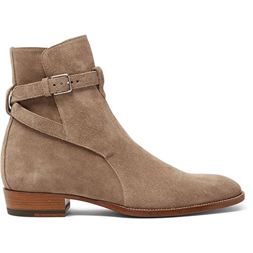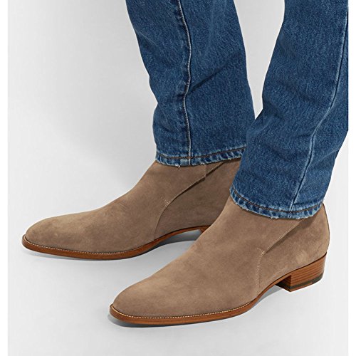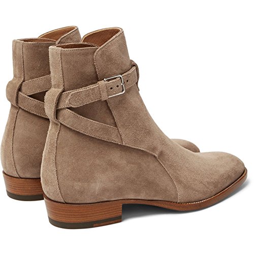 (Jinfu)/Men's/Boots/DIRECT FROM USA/Mens Suede Buckle Round Toe Ankle Chelsea Boots Khaki Pull On Outdoor Shoes