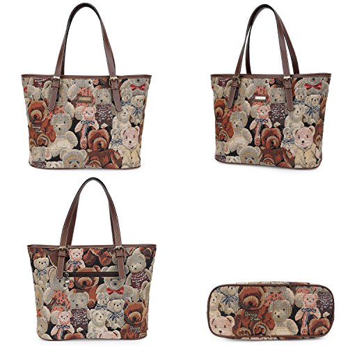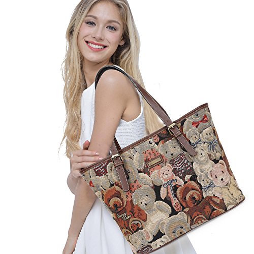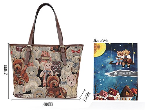 Sale! Cartoon Bear Stylish Single Shoulder Tote Bag Women Water Repellent Jacquard Handbag