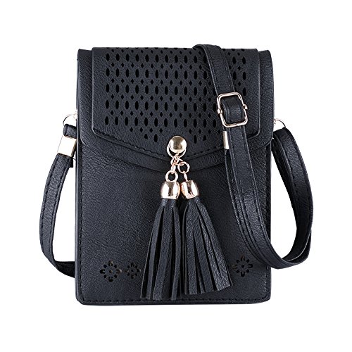 Kasebay Mini Women Shoulder Bag Universal PU Leather Phone Bag Message Small Handbags with Adjustable Shoulder Strap Cellphone Pouch Mobile Phone Cross body Bag for iPhone 8 (black)