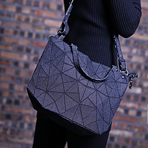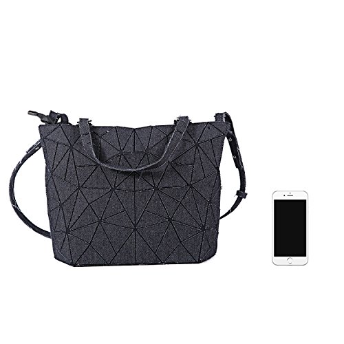 Fahion Geometric Canvas Totes Handbags Folding Crossbody Shoulder Bag for Men&Women (luminous) (black)