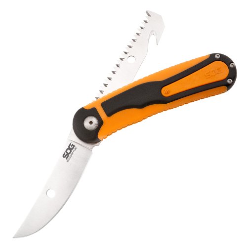 SOG Revolver 2.0 Hunt Fixed Blade FX22L-CP - Revolving 3.2" Blade & Saw w/ Gut Hook, GRN & TPR Handle, Leather Sheath