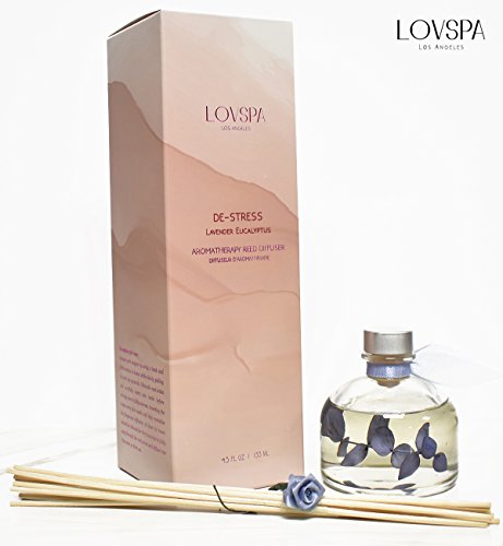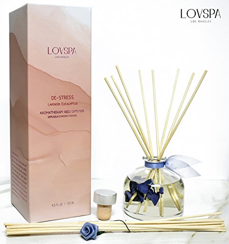 Lavender & Eucalyptus Scented Sticks Reed Diffuser Set DE-STRESS by LOVSPA Fragrances | A Relaxing Blend of Woody Lavender, Sage, Eucalyptus & Rosemary Essential Oils
