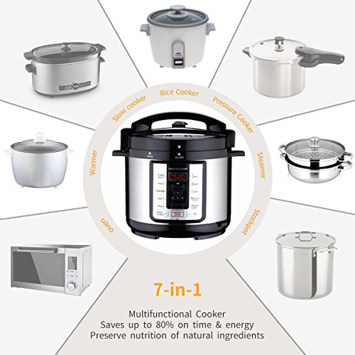 Combines 7 Kitchen Appliances in 1: A combination of Pressure Cooker, Slow Cooker, Rice Cooker, Steamer, Stockpot, Oven and Warmer, ALL IN ONE ! Make meals without the clutter, stress, and cleanup of multiple pots and pans.