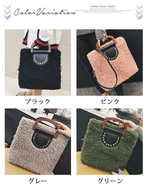 ファーバッグ ママバッグ 肩掛け ハンドバッグ フェイクファー ミニバッグ チェーン かばん 斜めがけ 巾着 ポシェット もこもこ マザーズバッグ トートバッグ ショルダーバッグ 手提げ レディース商品詳細■サイズ:高さ:約34cm/横幅:約34cm/厚さ:約11cm/重さ:0.73kg■素材:フェイクファー人気の小さめバッグは内ポケットもついており見た目よりも収納力があります。普段使いからお出かけやパーティなどに使える上品なデザインです。★備考●測り位置や測り方によって2-4cm誤差があり、予めご了承してください。●お品物の色合いは撮影環境、PCパソコン画面の表示環境により、若干異なる場合がございますので、予めご了承してください。●製造上、留め口、金具(マグネット)部分に小さいキズがある場合があります、予めご了承してください。●素材のため、お届けの際に臭いがある場合がございますが、数日干していただけますと軽減します。●通常8~10日間お届けます。