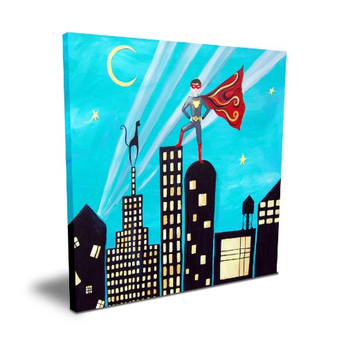 - The image wraps around the sides of the canvas and includes a hanging device on the reverse