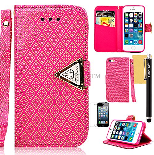 GoodPro PU Leather Card Slot Flip Wallet Case with Screen Protector, Stylus and Cleaning Cloth for iPhone 5 - Pink