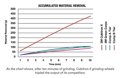 3M-engineered triangular shaped grain wears evenly, runs cool, and optimizes mineral breakdown, providing extra long life for wheel and tool