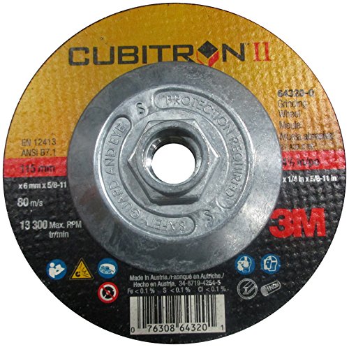 3M Cubitron II Depressed Center Grinding Wheel T27 Quick Change, Precision Shaped Ceramic Grain, 13300 RPM, 4-1/2" Diameter x 1/4" Thick, 5/8"-11 Arbor, 36+ Grade (Pack of 1)
