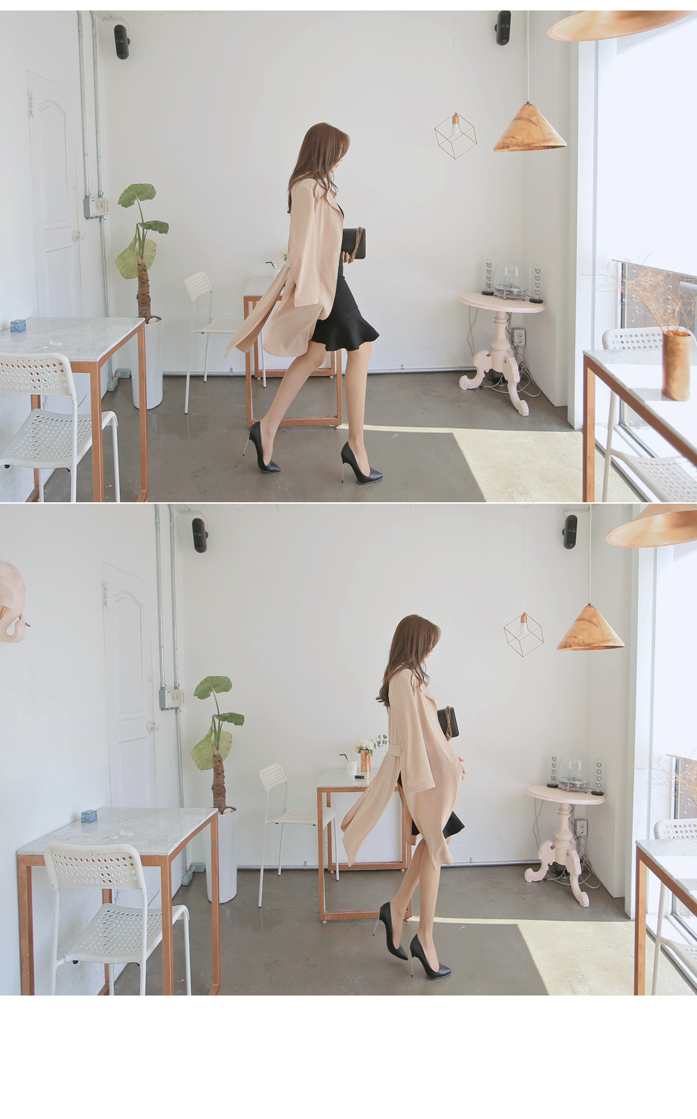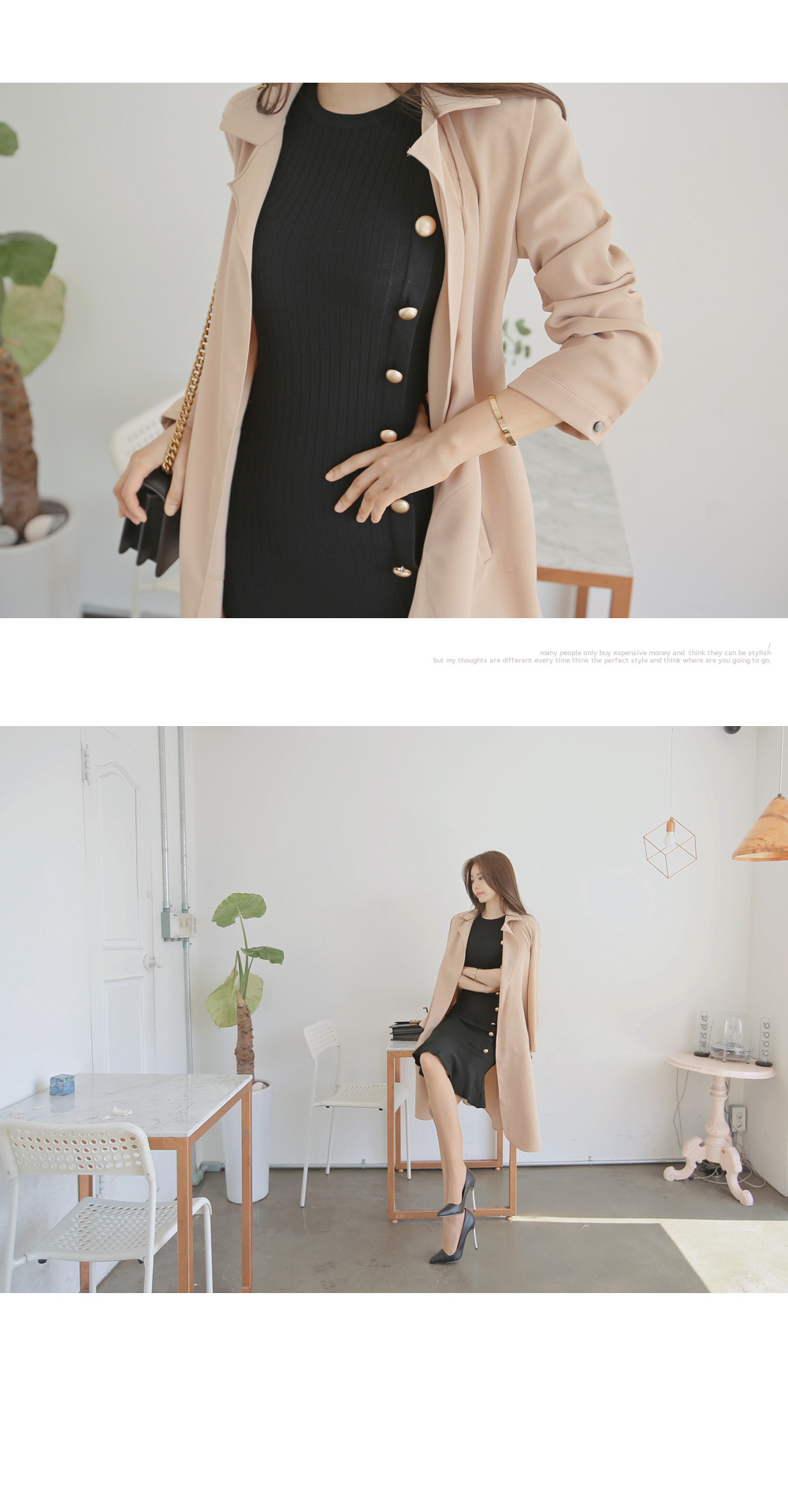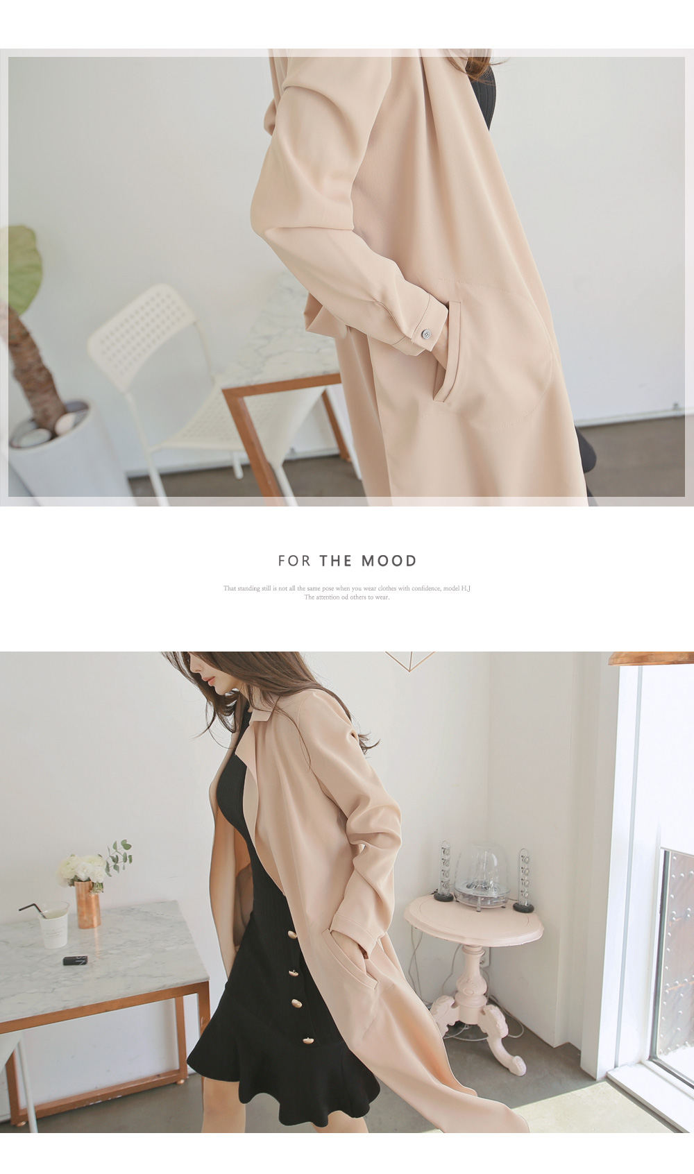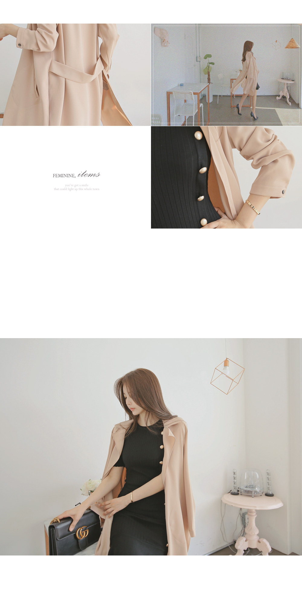 하객룩, 페미닌룩 격식있는 자리에서도 함께하기 좋은 트렌치 롱자켓 이에요.