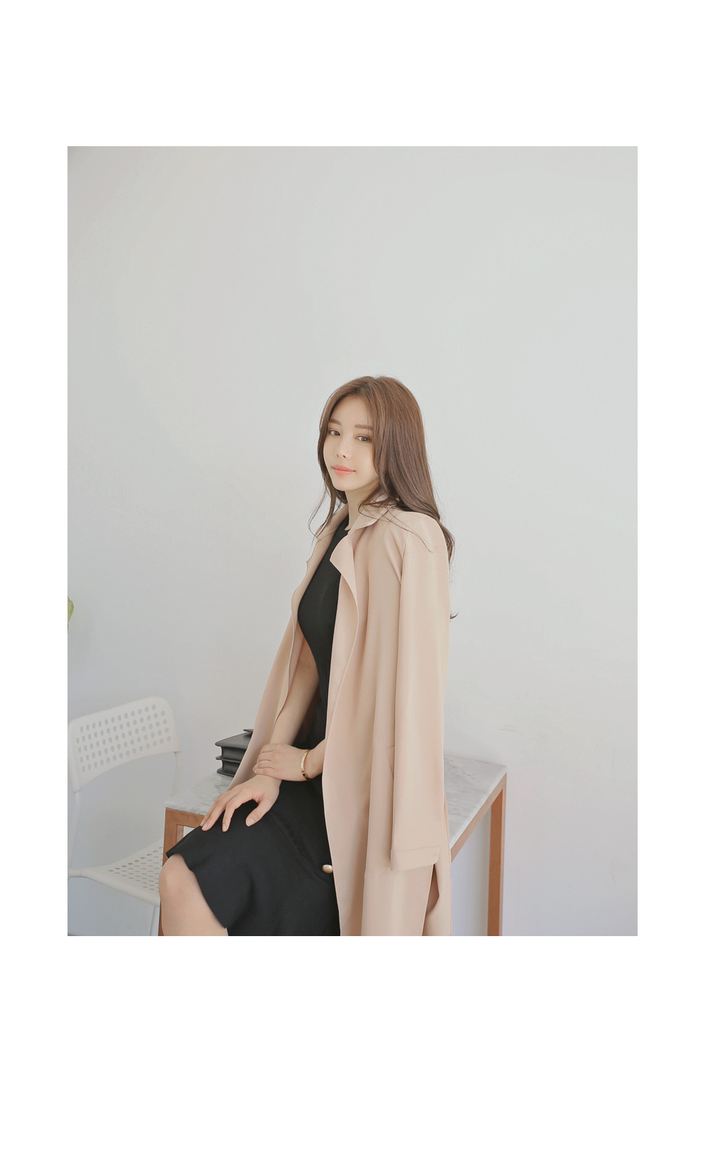 따로 클로징없이 가볍게 걸치는 숄느낌의 트렌치 롱자켓 이랍니다!