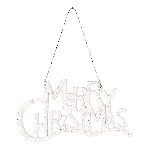Stacked Merry Christmas Sentiment Glitter Winter White 4 x 2.75 Metal Ornament