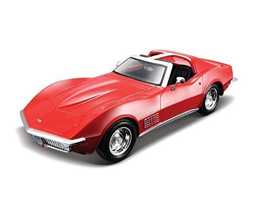 -. Binding : Toy -. Brand : Maisto -. EAN : 0783419700616 -. Feature : 1/24 scale diecast collectible model / 7.5\"L x 2.75\"W x 2\"H / Freewheel action, openable doors and hood / Each individually packed in a retail window box -. IsAdultProduct : 0 -. Label : Maisto -. Manufacturer : Maisto -. Model : 31202 -. MPN : 31202 -. PackageQuantity : 1 -. PartNumber : 31202 -. ProductGroup : Toy -. ProductTypeName : TOYS_AND_GAMES -. Publisher : Maisto -. Studio : Maisto -. Title : Maisto 1970 Chevy Corvette T-Top 1/24 Scale Diecast Model Car Red -. UPC : 783419700616