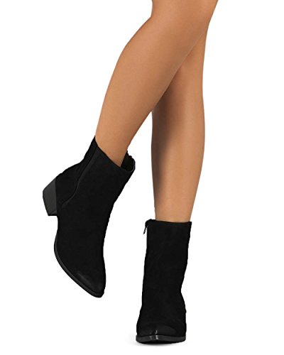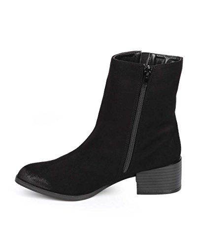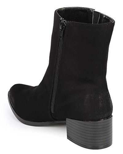 Qupid DC89 Women Suede Pointy Toe Block Heel Zip Chelsea Boot - Black