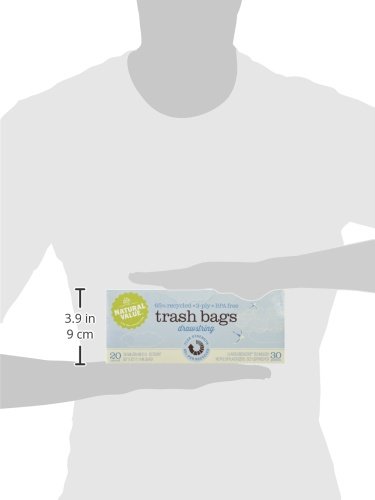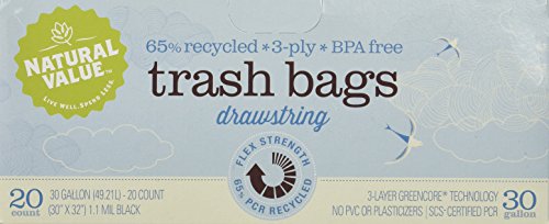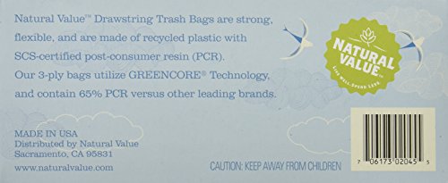 Natural Value Trash Bags Drawstring, Embossed Black, 20 Count