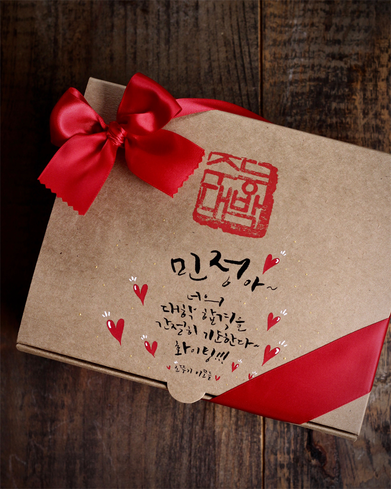 - 수능대박 전각 + 캘리그라피 + 하트일러스트-