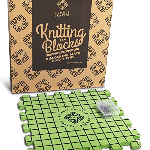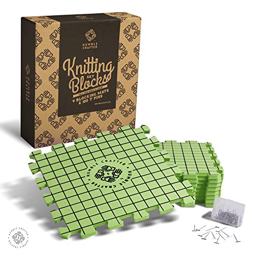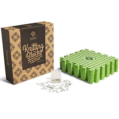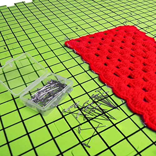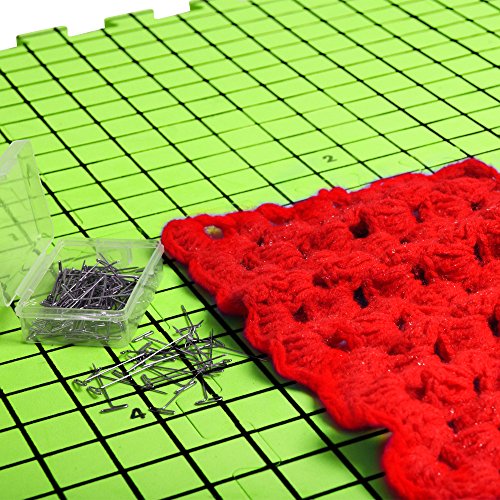 Blocking Mats for Knitting - Special Grid with exact 1 inch squares - includes 100 T-Pins for Needlepoint or Crochet - Green