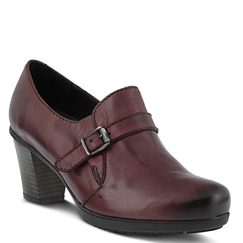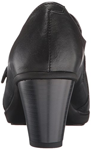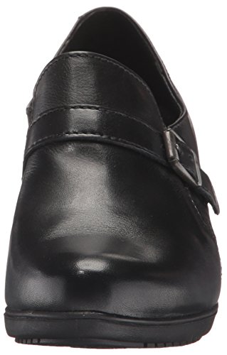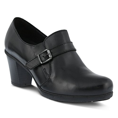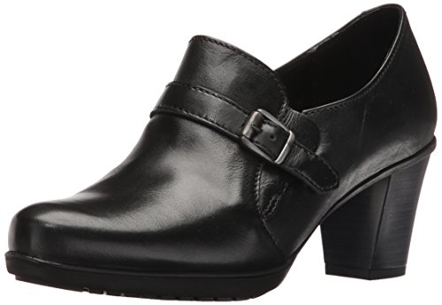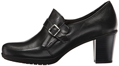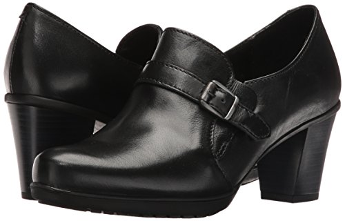 Product DescriptionPolished leather slip-on heeled loafer styled with a decorative buckled strap and covered elastic gore.0