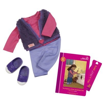 Dress your 18" doll for a special outing! Comes with shirt, pants, shoes and jacket. There is also a storybook of the next adventure.