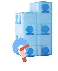 Studio : Waterbrick Publisher : Waterbrick Product Description You get (8) 3.5 Gallon Blue Waterbricks, (1) Pack of Aquamira Water Treatment Solutions that Treats 60 Gallons and (1) Waterbrick Spigot. That's 28 gallons of Fresh Clean Drinking Water. Notched design allows for an easy to open lid while the heavy duty full gasket provides a tight seal Wide Lid Opening An average adult can easily reach in for stored contents Carry Handle Offers easy comfort especially when carrying long distances on foot and, if necessary, is easily detachable BPA Free FDA Compliant Materials The container, lid and gasket are all BPA free and FDA compliant materials in order to store water and food. The container is made out of HDPE (High Density Polyethylene resin). The lid is made out of High Density Polypropylene. The gasket is made out of Dynaflex TPE (Thermoplastic Elastomer). Not for storing fuels or oils...Are You Prepared? 0