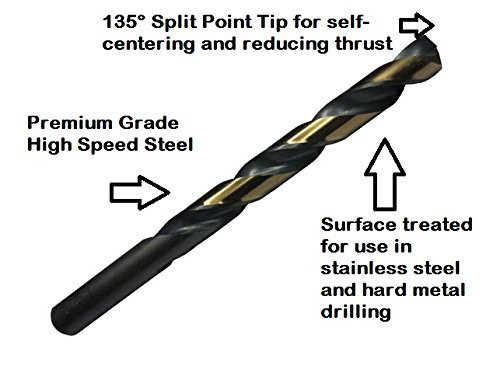 Drill America KFD, Killer Force High Speed Steel Drill Bit (1/64" - 1/2", #1 - #60, A - Z 1.00mm - 13.00mm), Split Point, Black and Gold, Jobber Length, Heavy Duty for Hard Metal Drilling