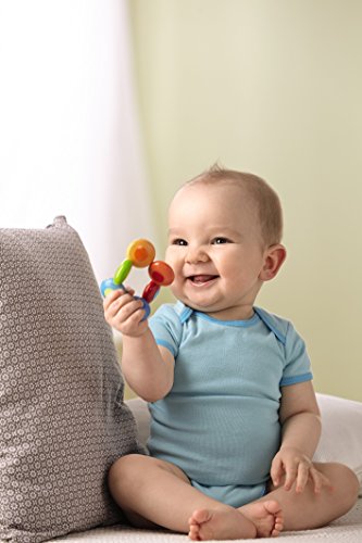- Measures approx 4" in diameter and is safe for teething. Recommended for babies ages 10 months and up.