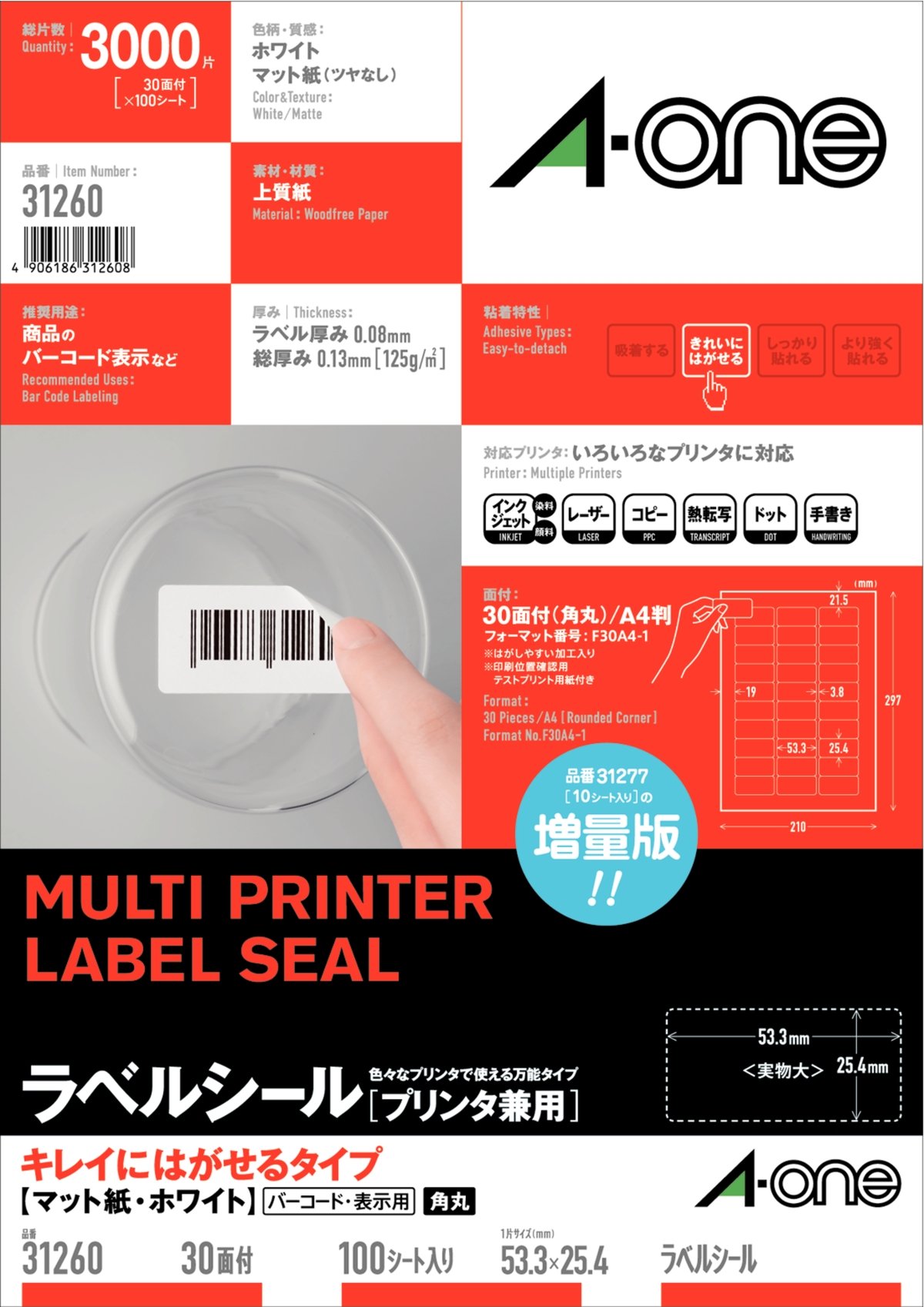 100 sheet A4 size 30 face margin four sides with rounded corners type matte paper peel off the white-One (A-one) adhesive labels in the printer combined use] beautiful (3 000 pieces) 31260 (japan imp