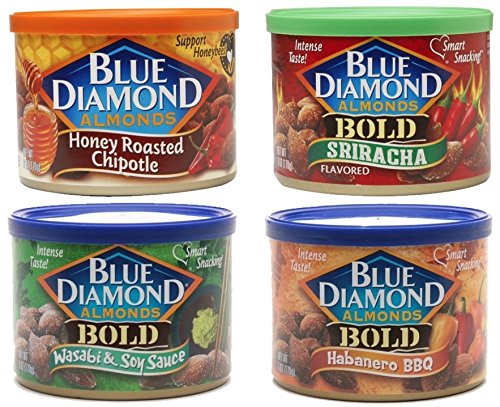 Blue Diamond Bold Hot & Spicy Almonds Bundle: Chipotle, Sriracha, Habanero and Wasabi Variety