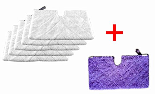 -. Feature : 5 pieces white pads + 1 piece blue pad,Total 6 pieces pack. / Inner mesh lining allows for steam to flow outward easily.Reusable: Machine wash, tumble dry or line dry / Steam activated micro fibres loosen and lift dirt and grime / Velcro fastener with elastic opening ensures a perfectly snug fit / Cleans all hard-floor surfaces with the power of steam