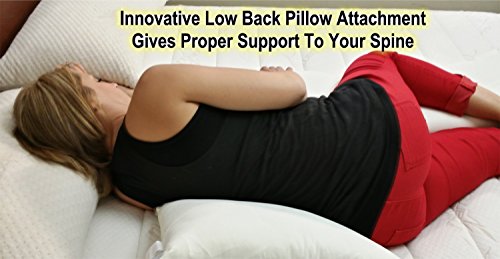 -. Feature : Innovative Back Pillow Attachment Offers True Spinal Support For Expectant Moms and Back Pain Sufferers Alike / Soft Quilted Connector Keeps Back Support Pillow, as well as the Leg and Belly Supporting Areas in the Correct Position Throughout The Night. / Helps Keep Pregnant Sleepers, Snorers and Heartburn Sufferers On their Side Throughout The Night. / Full Body Support, But Unlike Competitors, It Allows You To Still Use Your Own Neck Pillow / 5-Year Limitied Warranty and 90 Day Return Policy! Easy To Care For With Removable Schmoozie Cover that is Machine Washable